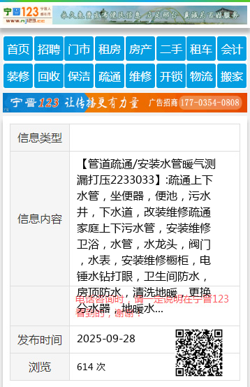 【管道疏通/安装水管暖气测漏打压2233033】:疏通上下水管,坐便器,便池,污水井,下水道,改装维修疏通家庭上下污水管,安装维修卫浴,水管,水龙头,阀门,水表,安装维修橱柜,电锤水钻打眼,卫生间防水,房顶防水,清洗地暖,更换分水器,地暖水管测漏,安装维修太阳能,太阳能移机,安装维修热水器和液晶电视,按装维修洗衣机,油烟机,浴霸灯具维修,家庭电路维修更换插座,漏电保护器等,开锁换锁,更换锁具。 地址、电话:桥西守敬路桥东新华路2233033--13223256202 |