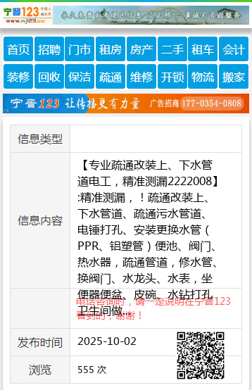 【专业疏通改装上、下水管道电工,精准测漏2222008】:精准测漏,!疏通改装上、下水管道、疏通污水管道、电锤打孔、安装更换水管(PPR、铝塑管)便池、阀门、热水器,疏通管道,修水管、换阀门、水龙头、水表,坐便器便盆、皮碗、水钻打孔卫生间做防水、建筑杂活疏通各种疑难下水道、上下水安装、空调移机加氟、挖凿门口、墙、地面,修装太阳能热水器,地暖暖气、地暖打压清洗,专业电工,电焊工上门服务,专业美缝,开锁换锁,家庭保洁,修装学校商场中央空调,修装消防管道、修装各种消防喷头 地址、电话:桥东3025188桥西22222008 |