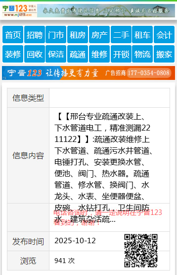 【【邢台专业疏通改装上、下水管道电工,精准测漏2211122】】:疏通改装维修上下水管道、疏通污水井管道、电锤打孔、安装更换水管、便池、阀门、热水器。疏通管道、修水管、换阀门、水龙头、水表、坐便器便盆、皮碗、水钻打孔,卫生间防水,建筑杂活疏通管道 承接疏通各种疑难下水道、上下水安装 专业疏通改装上、下水管道、电锤打孔、便池阀门热水器。疏通管道修水管换阀门、水龙头、水表、坐便器便盆、皮碗、水钻打孔,家庭电工、卫生间防水、清洗地暖 精准测漏水 地暖 暖气 自来水精准测漏水 地暖测堵 开换锁 地址、电话:2211122 |