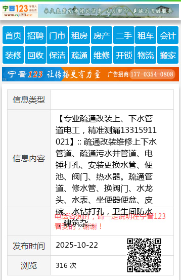 【专业疏通改装上、下水管道电工,精准测漏13315911021】:: 疏通改装维修上下水管道、疏通污水井管道、电锤打孔、安装更换水管、便池、阀门、热水器。疏通管道、修水管、换阀门、水龙头、水表、坐便器便盆、皮碗、水钻打孔,卫生间防水,建筑杂活疏通管道 承接疏通各种疑难下水道、上下水安装 专业疏通改装上、下水管道、电锤打孔、便池阀门热水器。疏通管道修水管换阀门、水龙头、水表、坐便器便盆、皮碗、水钻打孔,家庭电工、卫生间防水、清洗地暖 精准测漏水 地暖 暖气 自来水精准测漏水 地暖测堵 开换锁 清洗太阳能 清洗热水器 地址、电话:桥东5234234桥西2224399 |