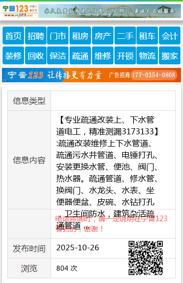 【专业疏通改装上、下水管道电工,精准测漏3173133】:疏通改装维修上下水管道、疏通污水井管道、电锤打孔、安装更换水管、便池、阀门、热水器。疏通管道、修水管、换阀门、水龙头、水表、坐便器便盆、皮碗、水钻打孔,卫生间防水,建筑杂活疏通管道 承接疏通各种疑难下水道、上下水安装 专业疏通改装上、下水管道、电锤打孔、便池阀门热水器。疏通管道修水管换阀门、水龙头、水表、坐便器便盆、皮碗、水钻打孔,家庭电工、卫生间防水、清洗地暖 精准测漏水 地暖 暖气 自来水精准测漏水 地暖测堵 开换锁 清洗太阳能 清洗热水器 地址、电话:邢台市3173133---13231925363 |