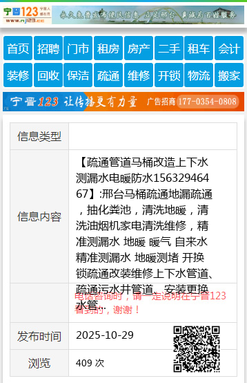 【疏通管道马桶改造上下水测漏水电暖防水15632946467】:邢台马桶疏通地漏疏通,抽化粪池,清洗地暖,清洗油烟机家电清洗维修,精准测漏水 地暖 暖气 自来水精准测漏水 地暖测堵 开换锁疏通改装维修上下水管道、疏通污水井管道、安装更换水管、便池、阀门、热水器。疏通管道、修水管、换阀门、水龙头、水表、坐便器便盆、皮碗、水钻打孔,卫生间防水,建筑杂活疏通管道 承接疏通各种疑难下水道、上下水安装 专业疏通改装上、下水管道、便池阀门热水器。疏通管道修水管换阀门、水龙头、水表、坐便器便盆、皮碗,家庭电工、卫生间防水,桥东桥西周边家庭各种活 地址、电话:疏通管道马桶改造上下水测漏水电暖防水15632946467 |