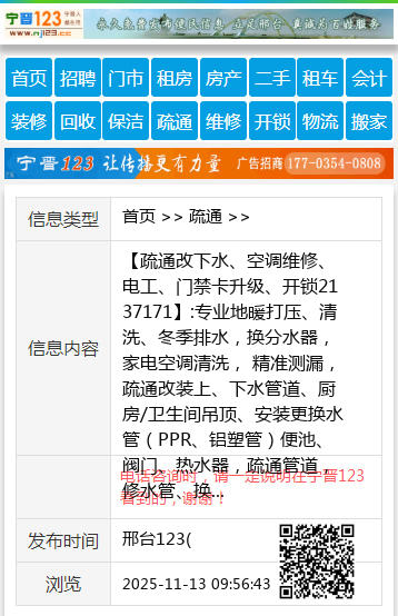 【疏通改下水、空调维修、电工、门禁卡升级、开锁2137171】:专业地暖打压、清洗、冬季排水,换分水器,家电空调清洗, 精准测漏,疏通改装上、下水管道、厨房/卫生间吊顶、安装更换水管(PPR、铝塑管)便池、阀门、热水器,疏通管道,修水管、换阀门、水龙头、水表,水钻打孔,卫生间、厨房、阳台免砸瓷砖做防水、修房(楼)顶疑难漏水,维修壁挂炉,太阳能热水器。专业电工,维修电脑、小家电,缝纫机,空调移机加氟,电焊工上门服务。升级门禁卡、电梯卡制作,开锁换锁,家庭保洁,老旧危墙房加固,修装学校商场中央空调,修装消防管道、装改各种消防喷头。 地址、电话:桥东19931956371桥西2137171 【电话咨询时,请一定说明在邢台123看到的,谢谢!】 |