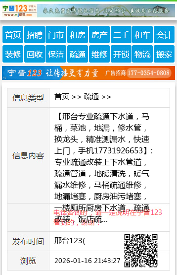 【邢台专业疏通下水道,马桶,菜池,地漏,修水管,换龙头,精准测漏水,快速上门,手机17731926653】:专业疏通改装上下水管道,疏通管道,地暖清洗,暖气漏水维修,马桶疏通维修,地漏堵塞,厨房油污堵塞,一楼厕所厨房下水道,疏通改装,饭店疏通下水道,工厂单位管道疏通,可开发票,维修管道,更换水龙头,维修自来水管,暗管测漏水,铁管,ppr管,家庭电工,桥东,桥西,开发区,郊区,都可上门疏通维修,服务有保障 地址、电话:王师傅17731926653微信同号 管道疏通 【电话咨询时,请一定说明在邢台123看到的,谢谢!】 |