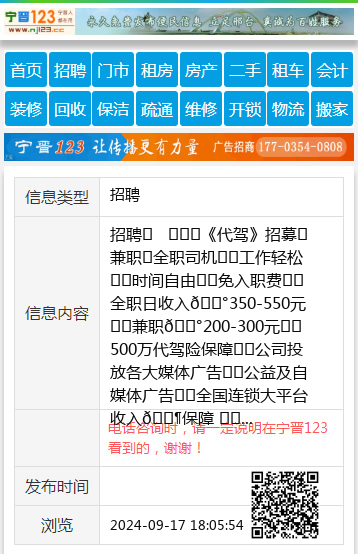 招聘 ➠➠➠《代驾》招募✤兼职✤全职司机◗✅工作轻松◗✅时间自由◗✅免入职费◗✅全职日收入💰350-550元◗✅兼职💰200-300元◗✅500万代驾险保障◗✅公司投放各大媒体广告◗✅公益及自媒体广告◗✅全国连锁大平台收入🈶保障 ◗✅就近派单◗✅公平公正◗✅22-50周◗✅C1及以上驾照◗✅三年以上驾龄◗✅手动℗自动车型熟练驾驶◗☎0319-3333304;15612970708()✅另聘人事|内勤各1名☎ 聘 |