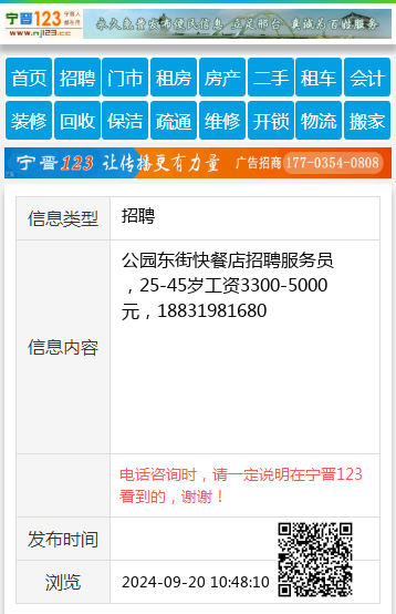 公园东街快餐店招聘服务员,25-45岁工资3300-5000元,18831981680