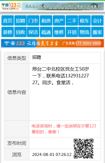 邢台二中北校区找女工50岁一下,联系电话13293122727。同步。食堂活,