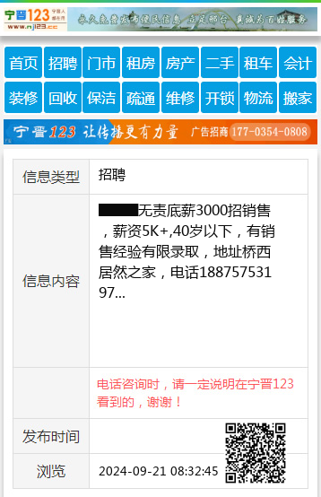 ████无责底薪3000招销售,薪资5K+,40岁以下,有销售经验有限录取,地址桥西居然之家,电话18875753197