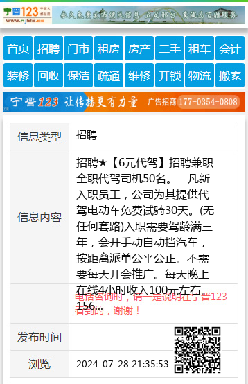 招聘★【6元代驾】招聘兼职全职代驾司机50名。 凡新入职员工,公司为其提供代驾电动车免费试骑30天。(无任何套路)入职需要驾龄满三年,会开手动自动挡汽车,按距离派单公平公正。不需要每天开会推广。每天晚上在线4小时收入100元左右。15631962533(加咨询) 聘