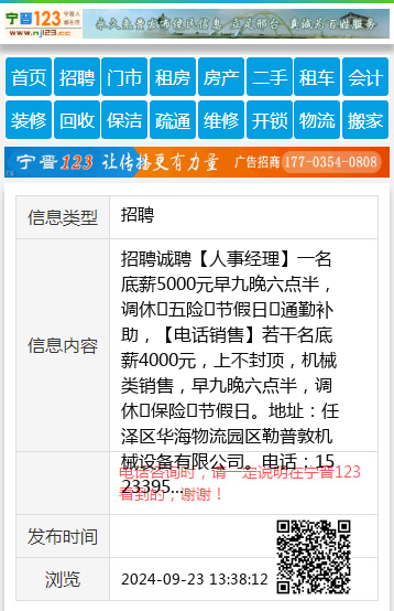 招聘诚聘【人事经理】一名底薪5000元早九晚六点半,调休➕五险➕节假日➕通勤补助,【电话销售】若干名底薪4000元,上不封顶,机械类销售,早九晚六点半,调休➕保险➕节假日。地址:任泽区华海物流园区勒普敦机械设备有限公司。电话:15233958700工作轻松不加班 聘