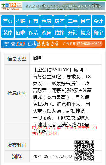 【玺公馆PARTYK】诚聘:商务公主50名,要求女,18岁以上,形象好气质佳,吃苦耐劳!底薪+服务费+%高提成(本市最高),月入保底1.5万+。聘营销个人、团队带业绩入场,高额转场,一切可淡。(能力决定收入)地址:信都区兴达路210号以上职位均带薪假期,高福利,高收入!(小白可带薪培养)电话:(下午三点后致电)(17503374567程总)(19931902120郭总) |