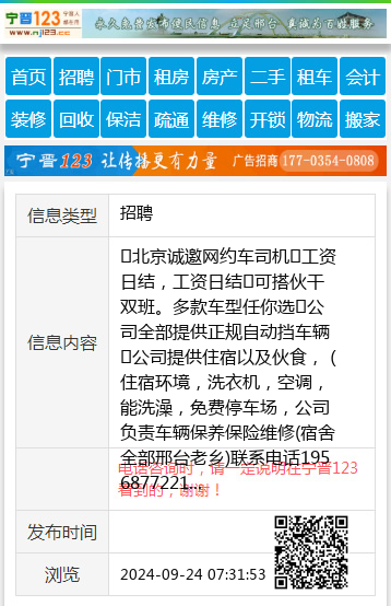 ✓北京诚邀网约车司机✓工资日结,工资日结✓可搭伙干双班。多款车型任你选✓公司全部提供正规自动挡车辆✓公司提供住宿以及伙食,(住宿环境,洗衣机,空调,能洗澡,免费停车场,公司负责车辆保养保险维修(宿舍全部邢台老乡)联系电话19568772215,同步(程队)