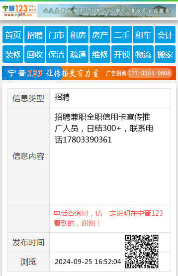招聘兼职全职信用卡宣传推广人员,日结300+,联系电话17803390361