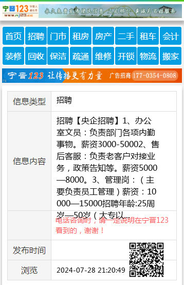 招聘【央企招聘】1、办公室文员:负责部门各项内勤事物。薪资3000-50002、售后客服:负责老客户对接业务,政策告知等。薪资5000—8000。3、管理岗:(主要负责员工管理)薪资:10000—15000招聘年龄:25周岁—50岁(大专以上学历)双休,节假日正常休息。工作地点:邢台市桥西区联系电话:18631995567 聘 |