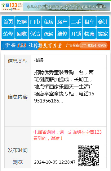 招聘优秀童装导购一名,两班倒底薪加提成,长期工,地点桥西家乐园天一生活广场店皇室童缘专柜,电话15931956185
