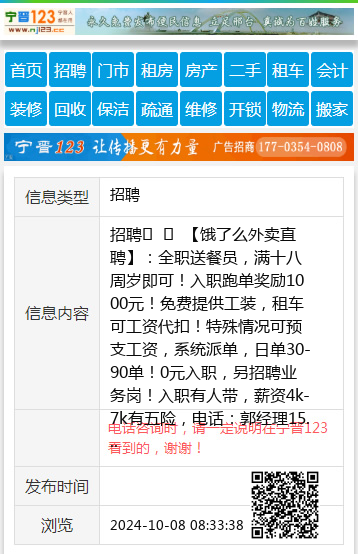 招聘 【饿了么外卖直聘】:全职送餐员,满十八周岁即可!入职跑单奖励1000元!免费提供工装,租车可工资代扣!特殊情况可预支工资,系统派单,日单30-90单!0元入职,另招聘业务岗!入职有人带,薪资4k-7k有五险,电话:郭经理15130980956(信) 聘