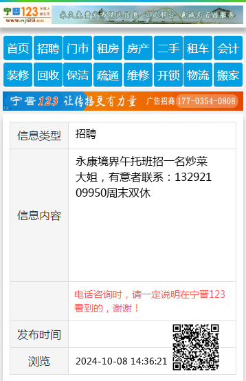 永康境界午托班招一名炒菜大姐,有意者联系:13292109950周末双休