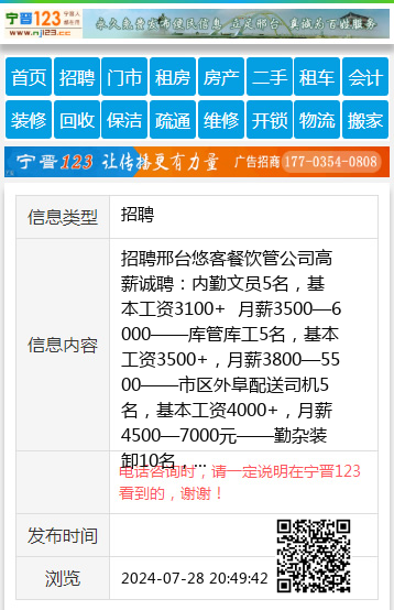 电话咨询时,请一定说明在邢台123看到的,谢谢! |