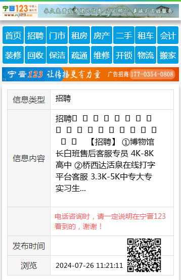 招聘 【招聘】 ①博物馆长白班售后客服专员 4K-8K高中 ②桥西达活泉在线打字平台客服 3.3K-5K中专大专实习生 ③支付宝接线业务员 3.6K-6K大专 待遇:8小时工作制无销售,3500-8000月休8天五险一金提供住宿;要求:20-35岁,有毕业证;联系: 16633966915/17633190052 聘 |