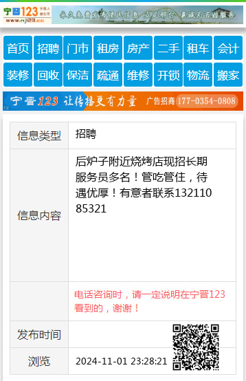 后炉子附近烧烤店现招长期服务员多名!管吃管住,待遇优厚!有意者联系13211085321 【电话咨询时,请一定说明在邢台123看到的,谢谢!】 |
