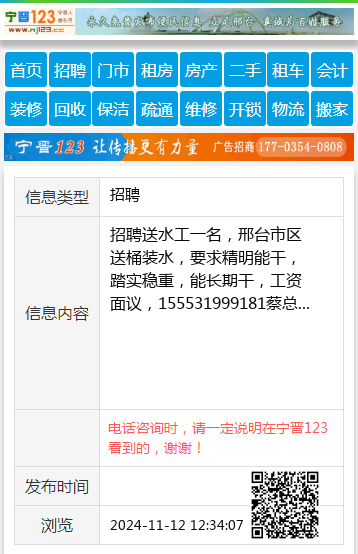 邢台市区招送水工,自带三轮车,年龄40至50岁,17325621967