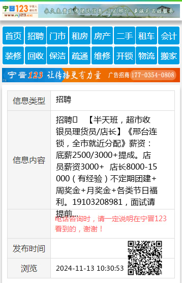 招聘 【半天班,超市收银员理货员/店长】《邢台连锁,全市就近分配》薪资:底薪2500/3000+提成。店员薪资3000+ 店长8000-15000(有经验)不定期团建+周奖金+月奖金+各类节日福利。19103208981,面试请提前预约。【不招暑假工】 聘