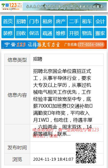 招聘北京国企单位直招正式工,从事半导体行业,要求大专及以上学历,从事过机械电气相关工作优先,工作经验丰富可放宽至中专,底薪7000➕加班费➕交通补助➕满勤奖➕年终奖,平均收入月1W➕,包吃住,待遇丰厚,六险两金,周末双休,14薪等福利,联系电话,15130900464,15233937404 聘