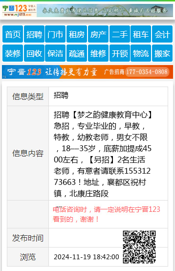 招聘【梦之韵健康教育中心】急招,专业毕业的,早教,特教,幼教老师,男女不限,18––35岁,底薪加提成4500左右,【另招】2名生活老师,有意者请联系15531273663!地址,襄都区祝村镇,北康庄路段 聘