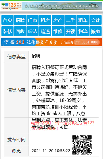 招聘入职签订正式劳动合同,不是劳务派遣!车险续保客服,刚需行业难度低!上市公司福利待遇好、不拖欠工资。提供客源,无需外出,冬暖夏凉;18-39周岁,岗前带薪培训不限经验,平均工资3k-6k无上限,八点半到六点,周末双休,法定节假日放假。可提供住宿、五险一金、工龄奖、父母赡养津贴、可晋升、节假日福利等。开发区河北工业大学科技园 15132997316 聘 |