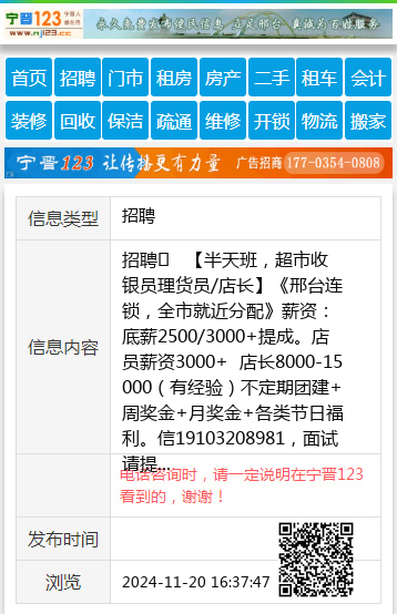 招聘 【半天班,超市收银员理货员/店长】《邢台连锁,全市就近分配》薪资:底薪2500/3000+提成。店员薪资3000+ 店长8000-15000(有经验)不定期团建+周奖金+月奖金+各类节日福利。信19103208981,面试请提前预约。【不招暑假工】 聘