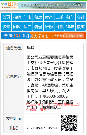 因公司发展需要现急需给员工交社保或者寻求社保代理,市县都可以,接受收费!能提供信息有信息费【另招聘】办公室行政人员,文员,客服,视频剪辑,兼职主播岗位,早九晚六,7小时工作,工资3000-5000元,地点东牛角附近,工作轻松易上手,有意电话:15731993918。 【电话咨询时,请一定说明在邢台123看到的,谢谢!】 |