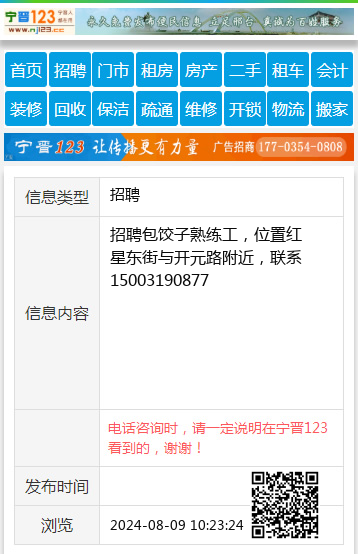 招聘包饺子熟练工,位置红星东街与开元路附近,联系15003190877