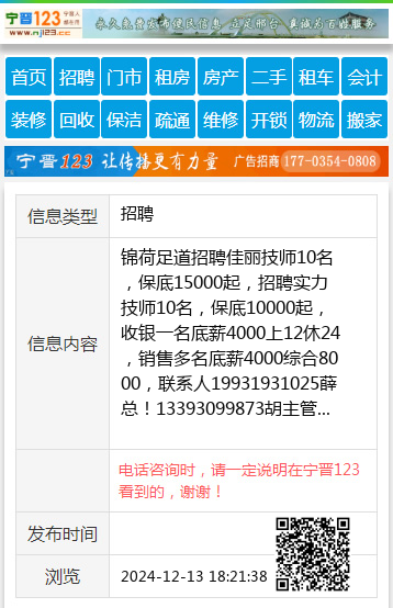 锦荷足道招聘佳丽技师10名,保底15000起,招聘实力技师10名,保底10000起,收银一名底薪4000上12休24,销售多名底薪4000综合8000,联系人19931931025薛总!13393099873胡主管