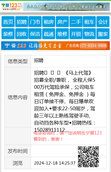 招聘 《马上代驾》招募全职/兼职, 全程人保500万代驾险承保,公司电车租赁(免押金、免押金 )每日订单接不停、每日爆单欢迎加入◆要求22-50周岁,驾龄三年以上熟练驾驶手动、自动挡各种车型◆招聘热线:15028911112 400-0319-717 地址:中华路168号(一中对面58家政二楼) 聘