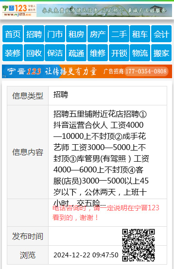 高薪诚聘:监控员4名45岁以下普通话标准会电脑两班倒工资面议,营销助理1名女士地址泉南西大街电话18032990006