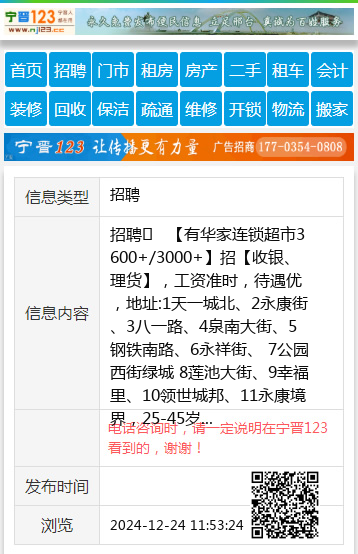 招聘 【有华家连锁超市3600+/3000+】招【收银、理货】,工资准时,待遇优,地址:1天一城北、2永康街、3八一路、4泉南大街、5钢铁南路、6永祥街、 7公园西街绿城 8莲池大街、9幸福里、10领世城邦、11永康境界,25-45岁,女,踏实勤恳。时间:7点-15点,15点-23点。公休2天 3000/3600.人力:19331930216 聘 |