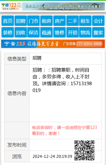 招聘::招聘兼职,时间自由,多劳多得,收入上不封顶。详情请咨询:15713198019