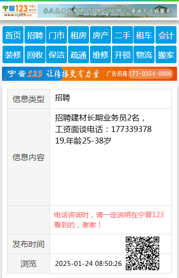 招聘建材长期业务员2名,工资面谈电话:17733937819.年龄25-38岁