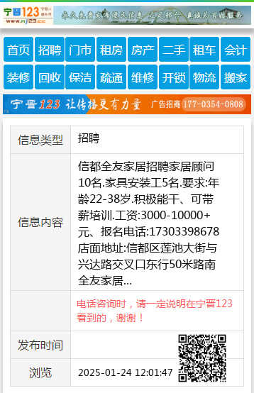 信都全友家居招聘家居顾问10名.家具安装工5名.要求:年龄22-38岁.积极能干、可带薪培训.工资:3000-10000+元、报名电话:17303398678店面地址:信都区莲池大街与兴达路交叉口东行50米路南全友家居