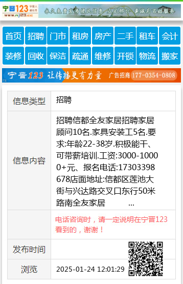 招聘信都全友家居招聘家居顾问10名.家具安装工5名.要求:年龄22-38岁.积极能干、可带薪培训.工资:3000-10000+元、报名电话:17303398678店面地址:信都区莲池大街与兴达路交叉口东行50米路南全友家居 聘