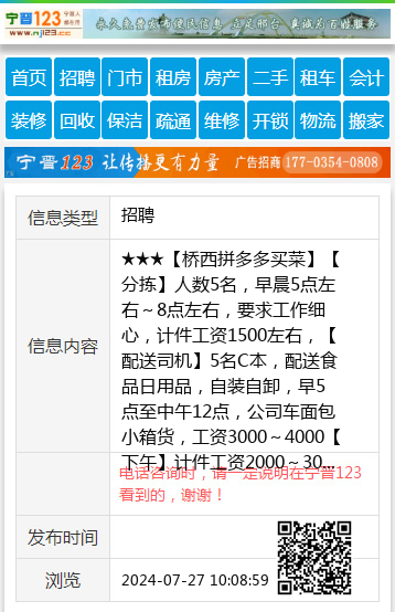 ★★★【桥西拼多多买菜】【分拣】人数5名,早晨5点左右~8点左右,要求工作细心,计件工资1500左右,【配送司机】5名C本,配送食品日用品,自装自卸,早5点至中午12点,公司车面包小箱货,工资3000~4000【下午】计件工资2000~3000,合计工资5000~7000元【尾板卸车+1000】【次月发上个月工资,不欠薪!【工作地址】:桥西东先贤村北【年龄】:45周岁以下(男女不限)熟练使用智能手机——☎️13131056166/ |