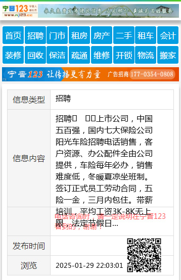 招聘 ❤️上市公司,中国五百强,国内七大保险公司阳光车险招聘电话销售,客户资源、办公配件全由公司提供,车险每年必办,销售难度低,冬暖夏凉坐班制。签订正式员工劳动合同,五险一金,三月内包住。带薪培训,平均工资3K-8K无上限,法定节假日,周末休息。职级津贴,长期服务奖,活动奖励等福利,年龄18-40。河北工业大学科技园苏15176112235同 聘 |