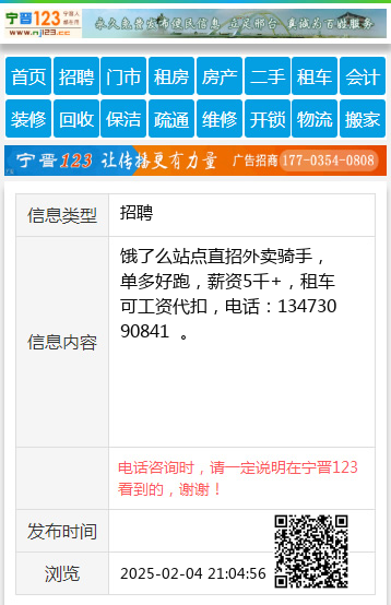 饿了么站点直招外卖骑手,单多好跑,薪资5千+,租车可工资代扣,电话:13473090841 。