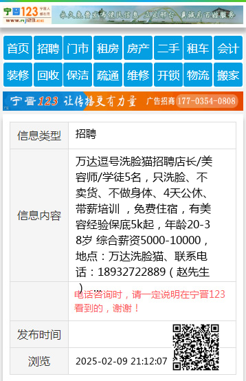 万达逗号洗脸猫招聘店长/美容师/学徒5名,只洗脸、不卖货、不做身体、4天公休、带薪培训 ,免费住宿,有美容经验保底5k起,年龄20-38岁 综合薪资5000-10000,地点:万达洗脸猫、联系电话:18932722889(赵先生)