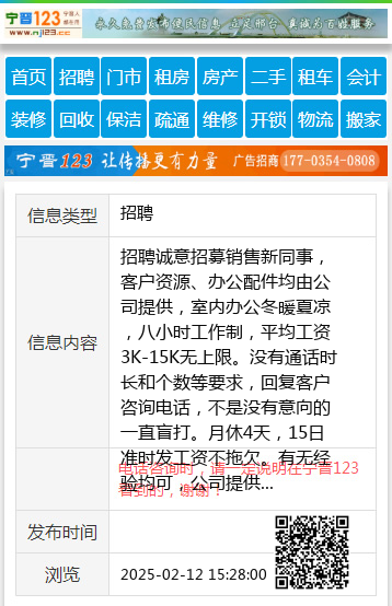 招聘诚意招募销售新同事,客户资源、办公配件均由公司提供,室内办公冬暖夏凉,八小时工作制,平均工资3K-15K无上限。没有通话时长和个数等要求,回复客户咨询电话,不是没有意向的一直盲打。月休4天,15日准时发工资不拖欠。有无经验均可,公司提供一对一带薪培训。要求有良好的沟通能力,有责任心、上进心。电话:18962060409, 同步 聘 |