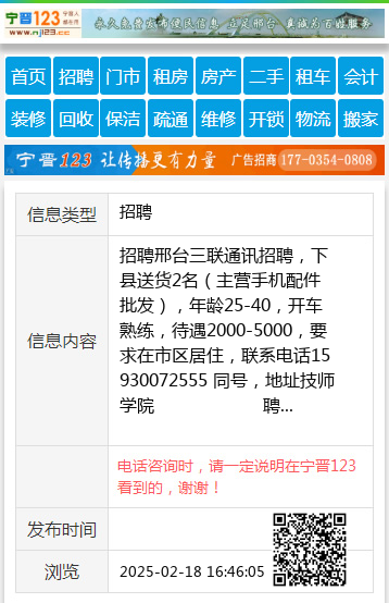 招聘邢台三联通讯招聘,下县送货2名(主营手机配件批发),年龄25-40,开车熟练,待遇2000-5000,要求在市区居住,联系电话15930072555 同号,地址技师学院 聘