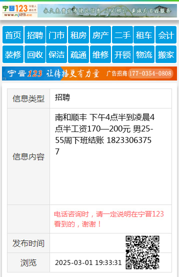 南和顺丰 下午4点半到凌晨4点半工资170—200元 男25-55周下班结账 18233063757