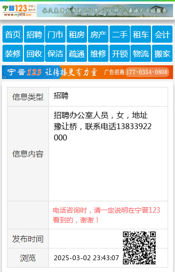 招聘办公室人员,女,地址豫让桥,联系电话13833922000