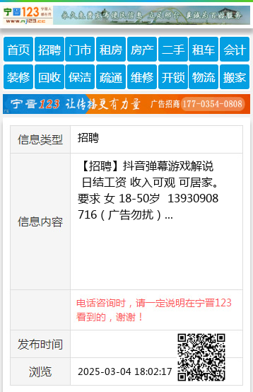 【招聘】抖音弹幕游戏解说 日结工资 收入可观 可居家。要求 女 18-50岁 13930908716(广告勿扰)