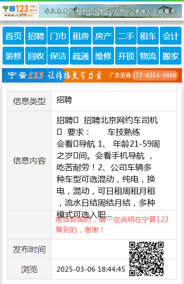 招聘 招聘北京网约车司机⚠ 要求: 车技熟练 会看导航 1、 年龄21-59周之岁间。会看手机导航 ,吃苦耐劳!2、公司车辆多种车型可选混动,纯电,换电,混动,可日租周租月租,流水日结周结月结,多种模式可选入职0费用,公司负责车辆保养保险维修。可免费试用7天,无任何费用,电话15910662141微信同步 聘 |
